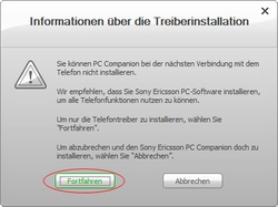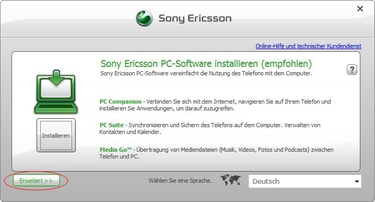 Möchten Sie die kompolette Sony Ericsson PC Software installieren, so klicken Sie auf Installieren.