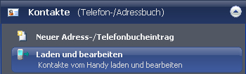 Klicken Sie dazu im Schnellstartbereich auf 'Kontakte von Handy laden und bearbeiten' (in der Rubrik 'Kontakte, Telefon-/Adressbuch':